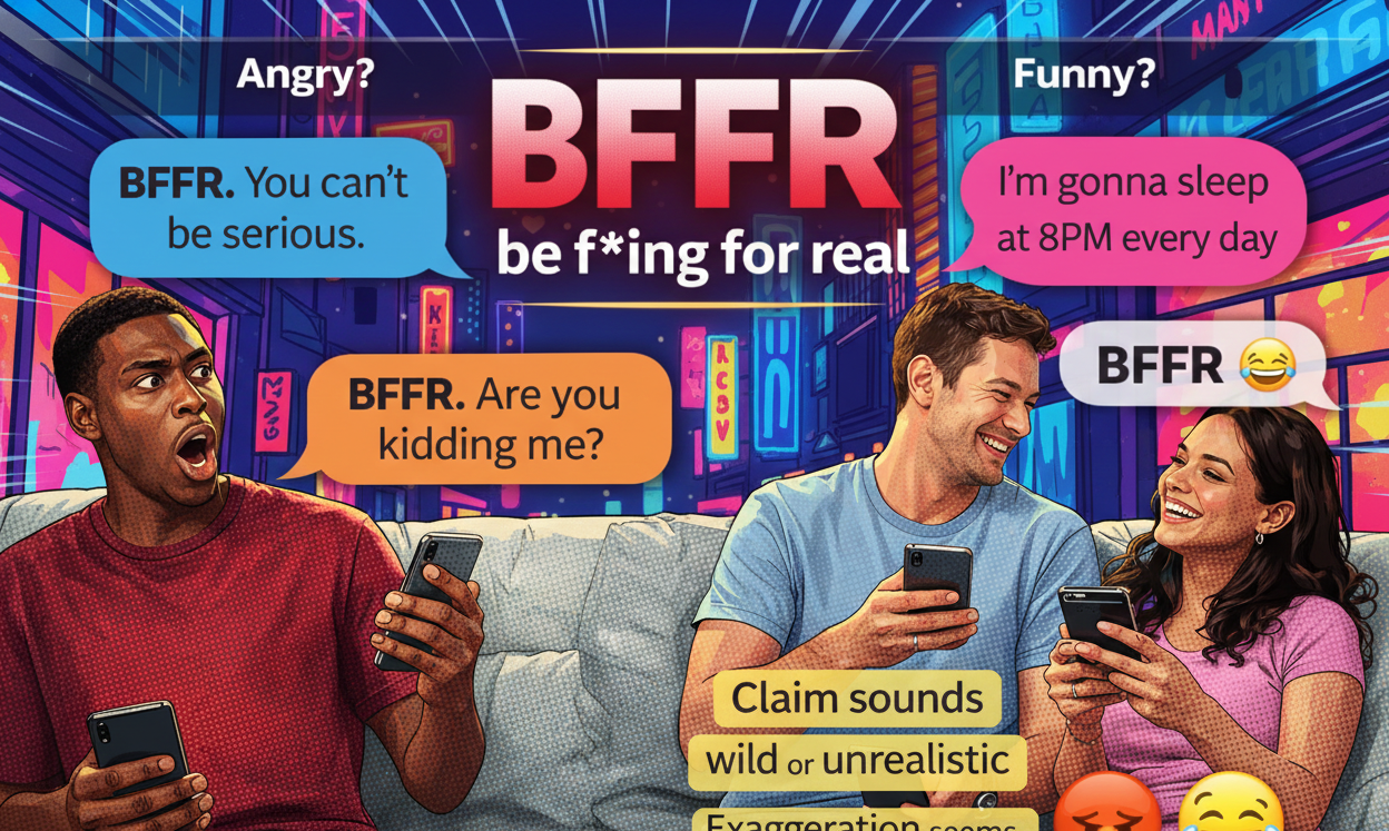 The most common bffr meaning is: “Be f*ing for real.” People use it to say, “Are you serious?” or “No way, be honest,” or “Stop playing.” In everyday texting, it is often used as a reaction to something surprising, dramatic, or hard to believe. It can be playful, like friends joking around, or it can be sharp, like calling someone out. That is why context matters so much. The same letters can feel funny in one chat and harsh in another. Most of the time, it is a strong reaction phrase, not a deep message.
