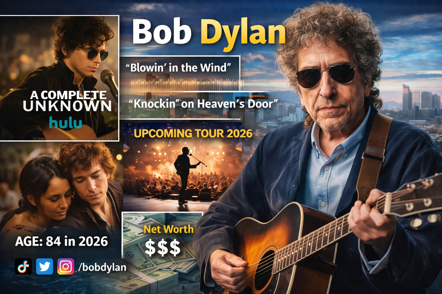 Bob Dylan is alive and still active. He was born May 24, 1941, so Bob Dylan’s age is 84 in 2026. He’s famous for timeless tracks like “Blowin’ in the Wind” and “Knockin’ on Heaven’s Door.” A major biopic, A Complete Unknown, features Timothée Chalamet as Dylan and is available on Hulu (March 27, 2025) with earlier VOD release details. Dylan’s touring continues, with official 2026 U.S. dates listed on bobdylan.com.
